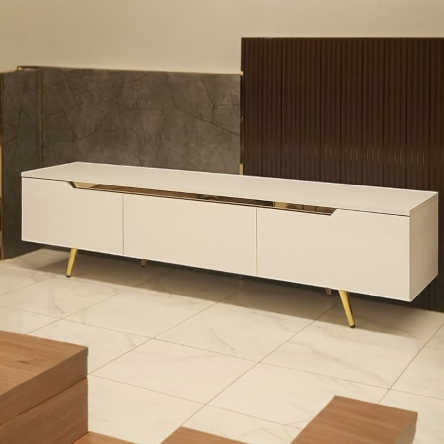 تمتاز بتصميم عصري عملي يحتوي على أرفف لتخزين الريسيفر والديكورات الصغيرة، مع سطح متين يتحمل وزن الشاشة بثبات